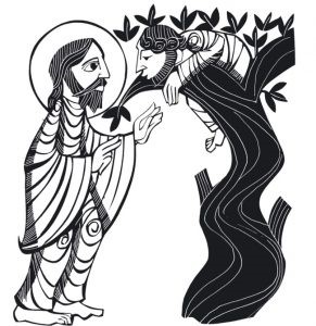 Jesús, al llegar a aquel sitio, levantó los ojos y dijo: «Zaqueo, baja en seguida, porque hoy tengo que alojarme en tu casa.»
