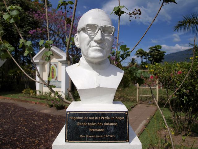Busto de Monseñor Romero ubicado en el hogar de niños Divina Providencia, en Santa Tecla. Foto Roberto Valencia.